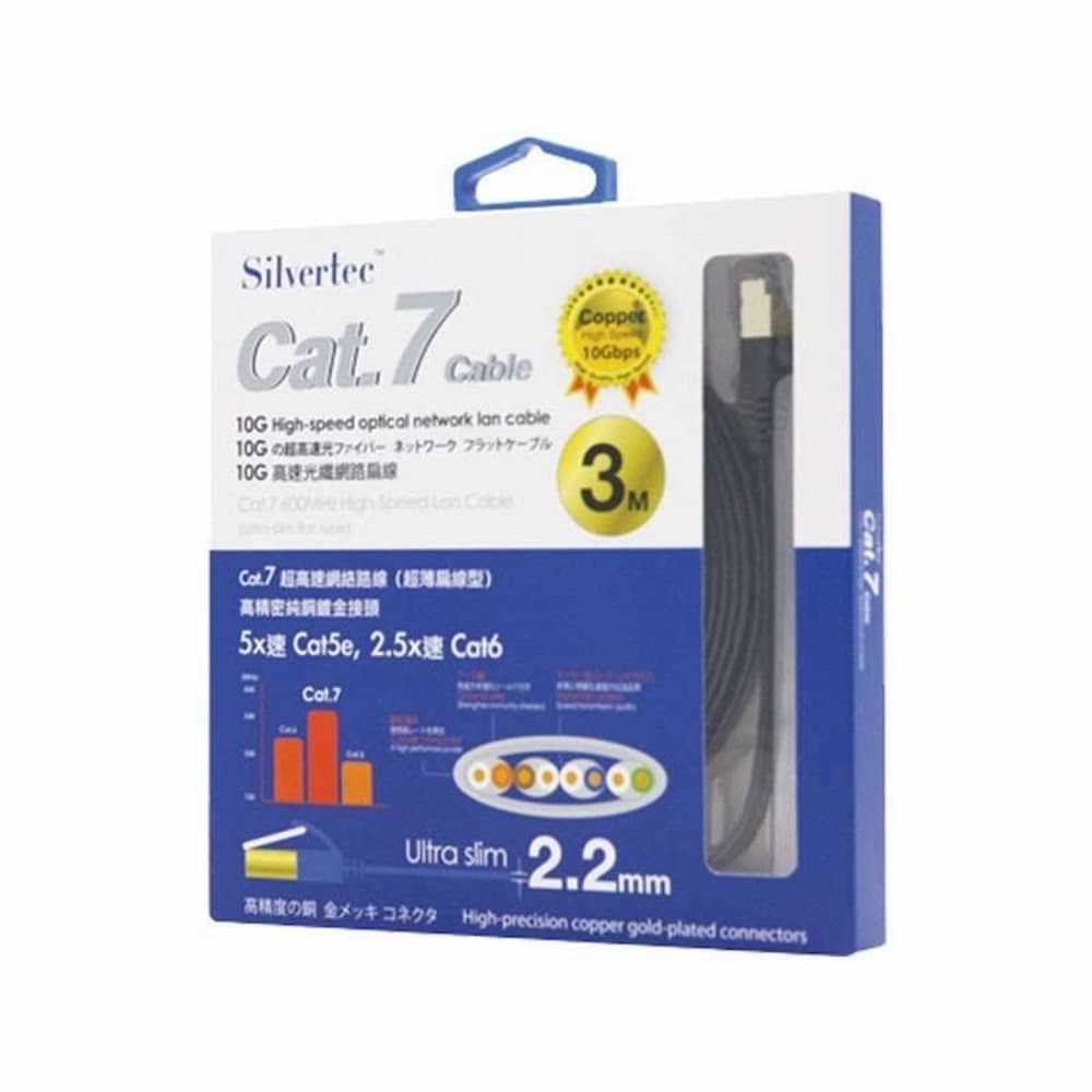 Home Networking Power Silvertec Cat.7 Lan Cable - 3M 10G High-Speed Optical Network Lan Cable (Black)