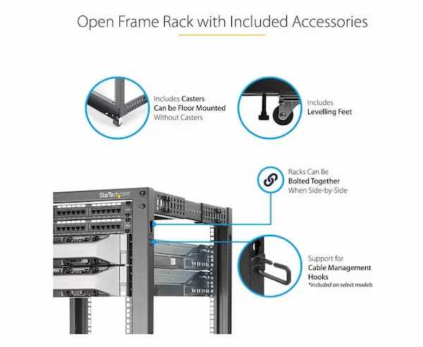 Home Electronics Computer Peripherals Mounts, Stands & Racks StarTech 4POSTRACK15U 15U 4-Post Server Rack, Open Frame, Adjustable Depth, 19-Inch