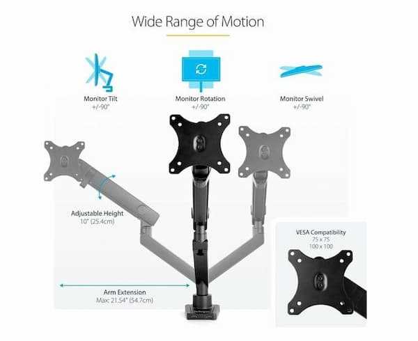 Home Electronics Monitor StarTech ARMSLIM2USB3 Slim Monitor Mount with USB 3.0 Hub - Height Adjustable, Up to 34-inch