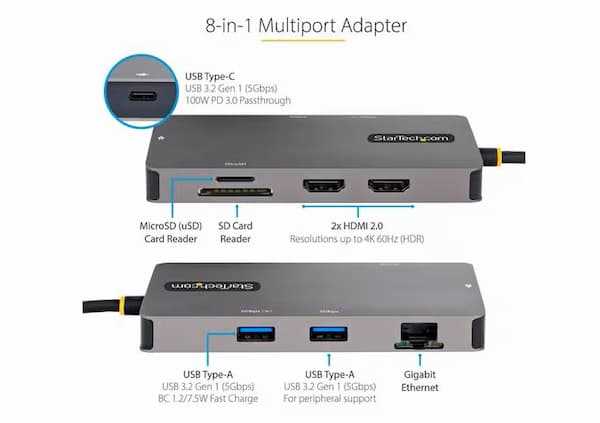 Home Networking USB Hubs StarTech.com 120B-USBC-MULTIPORT USB-C Docking Station - 4K Dual Display, 100W Power