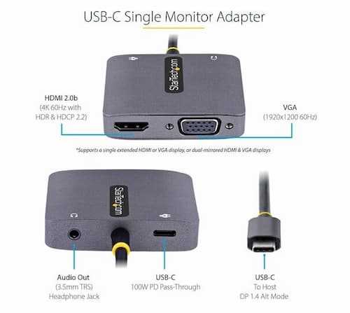 Home Electronics Adapters & Cables StarTech.com 122-USBC-HDMI-4K-VGA USB-C to HDMI VGA Audio Adapter 4K