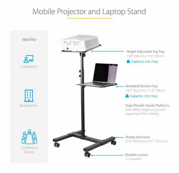 Home Electronics Laptop StarTech.com ADJPROJCART Heavy Duty Portable Projector & Laptop Stand/Cart