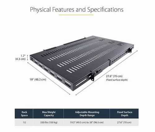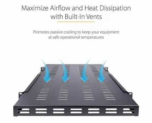 Home Panels, Enclosures & Racks Racks & Cabinets StarTech.com ADJSHELFHDV 1U Adjustable Vented Rack Shelf | Heavy-Duty 330 lbs Capacity | SPCC Steel
