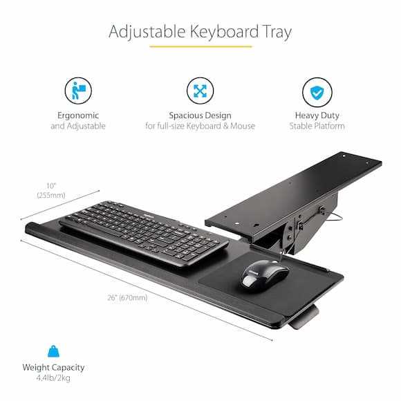 Home Electronics Computer Peripherals StarTech.com Adjustable Under-Desk Keyboard & Mouse Tray - Black Steel (KBTRAYADJ2)
