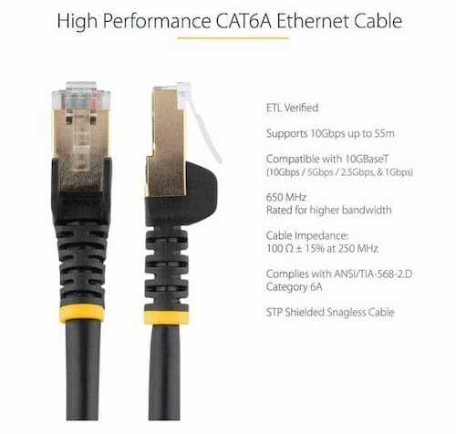 Home Electronics Adapters & Cables StarTech.com C6ASPAT20BK 20ft Cat6a Shielded Ethernet Patch Cable