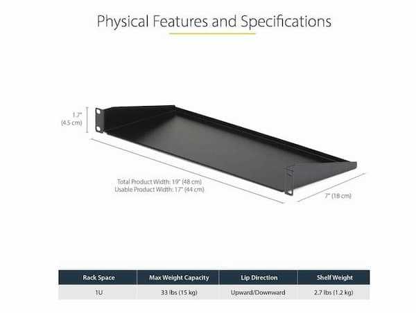 Home Electronics Computer Peripherals Mounts, Stands & Racks StarTech.com CABSHELF1U - 1U Fixed Cantilever Rack Shelf, 7-Inch Depth, 19-inch Rack Compatible