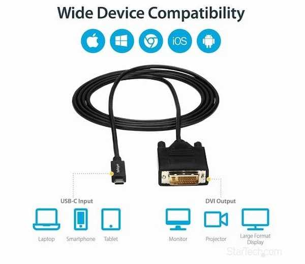 Home Fiber Optic Cables Accessories StarTech.com CDP2DVIMM2MB 2m USB-C to DVI Cable - 2560x1600 Video Adapter - Black