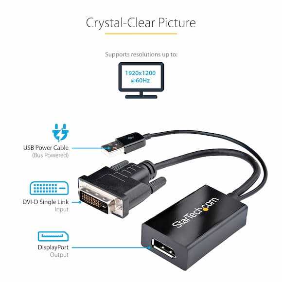 Home Electronics Adapters & Cables StarTech DVI-D to DisplayPort Adapter with USB Power (DVI2DP2)