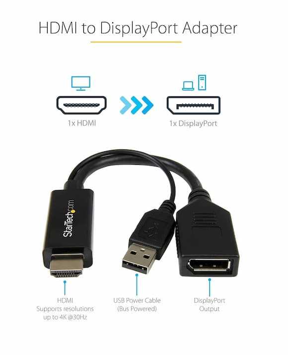 Home Electronics Adapters & Cables StarTech.com HDMI to DisplayPort Adapter - 4K 30Hz HDMI to DP Converter - USB Powered - Compact Black Adapter