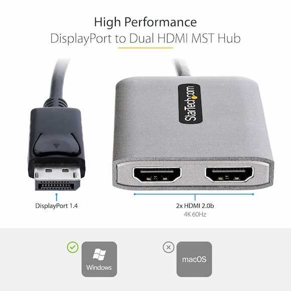 Home Networking USB Hubs StarTech.com MST14DP122HD DisplayPort to Dual HDMI Signal Splitter - 4K 60Hz, USB Powered