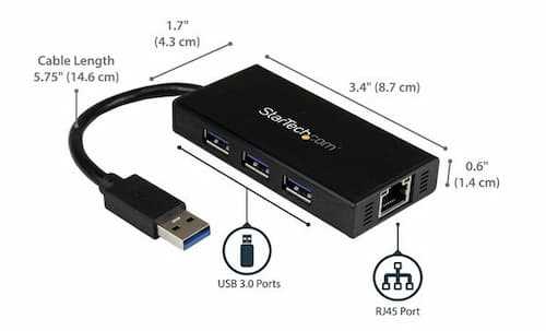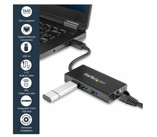 Home Networking USB Hubs StarTech.com ST3300GU3B USB 3.0 Hub With Gigabit Ethernet Adapter