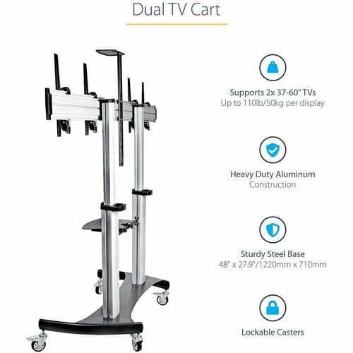 Home Electronics Computer Peripherals Mounts, Stands & Racks StarTech.com STNDMTVDUO 2-Shelf Display Cart - 109.77 kg Load Capacity, Mobile AV Equipment Rack