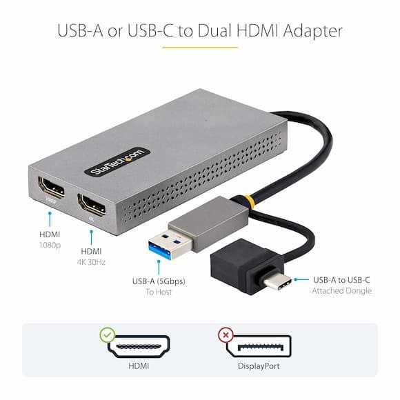 Home Electronics Adapters & Cables StarTech.com USB-C & USB-A to Dual HDMI Adapter (107B-USB-HDMI)