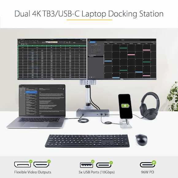Home Electronics Computer Peripherals Docking Station StarTech.com USB-C / Thunderbolt 3 Dock, 96W PD, Dual 4K, HDMI & DisplayPort (TB3CDK2DHUE)