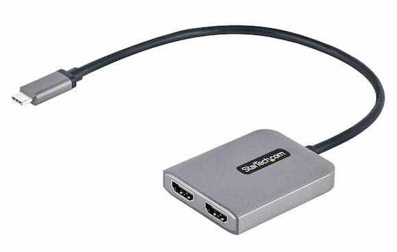 Home Electronics Adapters & Cables StarTech.com USB-C to Dual DisplayPort 1.4 Video Adapter | 4K UHD 60Hz | Space Gray (MST14CD122DP)