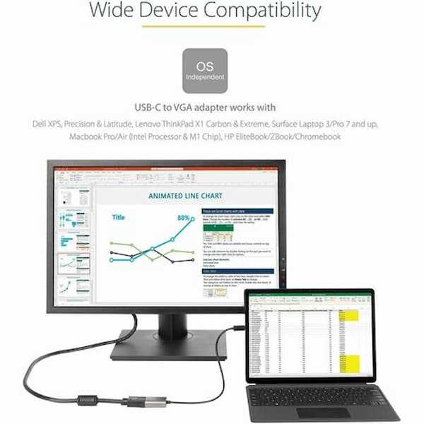 Home Electronics Adapters & Cables StarTech.com USB-C to VGA Video Adapter - Black, Type-C to VGA Converter for Laptop & Monitor