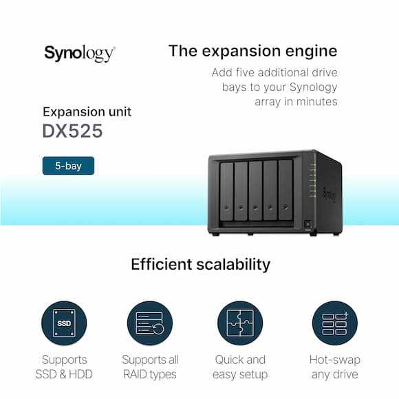 Home Networking Servers & Storage Synology DX525 5-Bay Expansion Unit - High-Capacity Storage Expansion for Synology NAS (6575508)