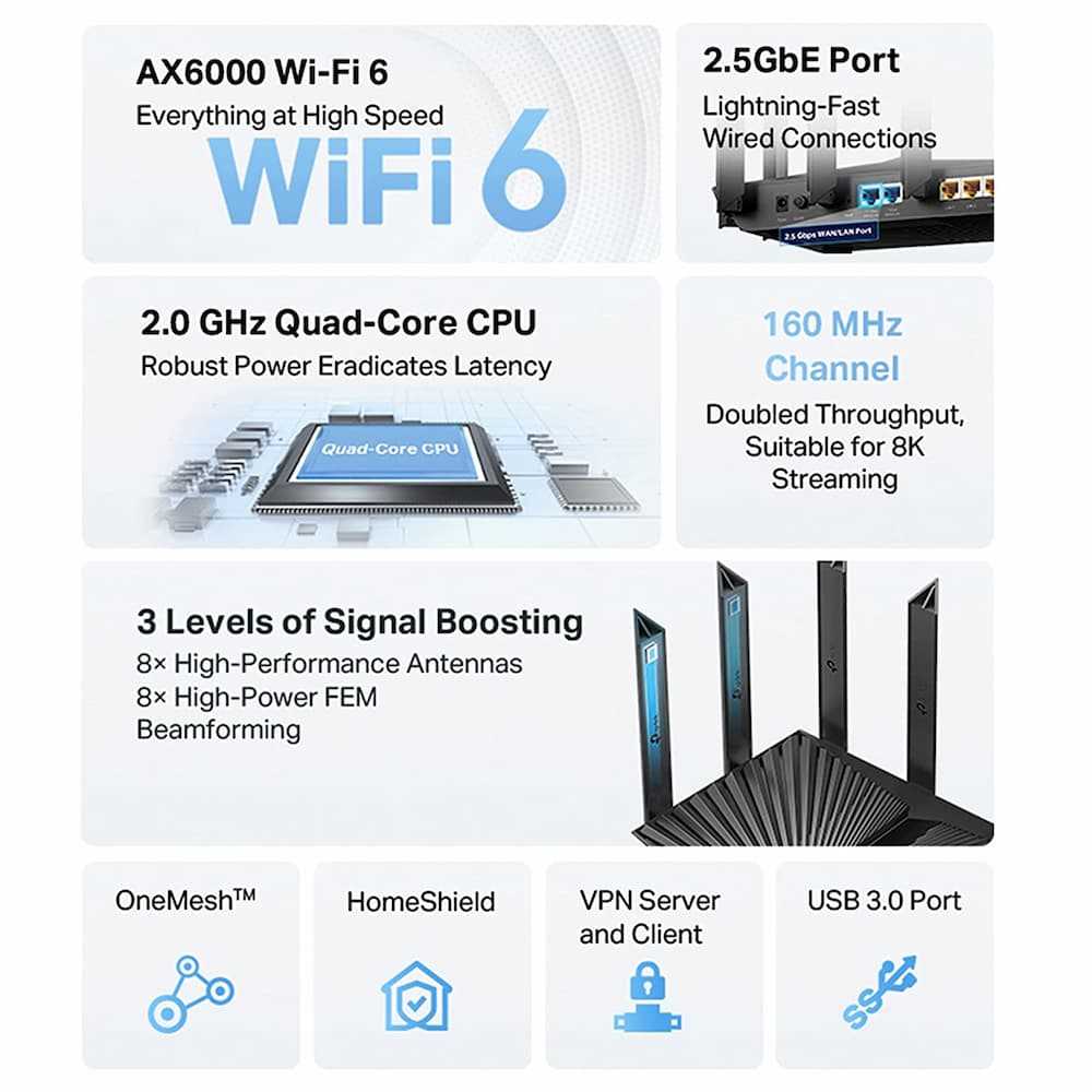 Home Switching Router, Security, NPB Routers TP-Link AX6000 Dual Band Gigabit 8-Stream Wi-Fi 6 Router (Black)
