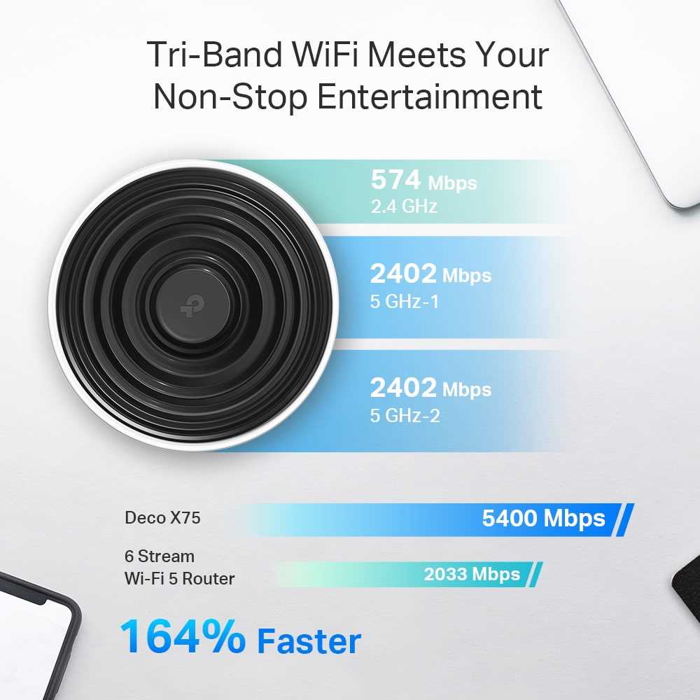 Home Networking Wireless Accessories TP-Link Deco-X75(1-pack) AX5400 Tri-Band Whole Home Mesh Wi-Fi 6 System (White)