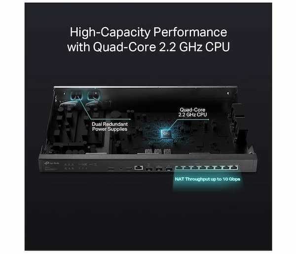 Home Networking Router, Security, NPB TP-Link ER8411 Omada Enterprise Wired 10G VPN Router - 10 WAN Ports, Omada SDN Support, Dual Power Supply, Load Balance, SPI Firewall