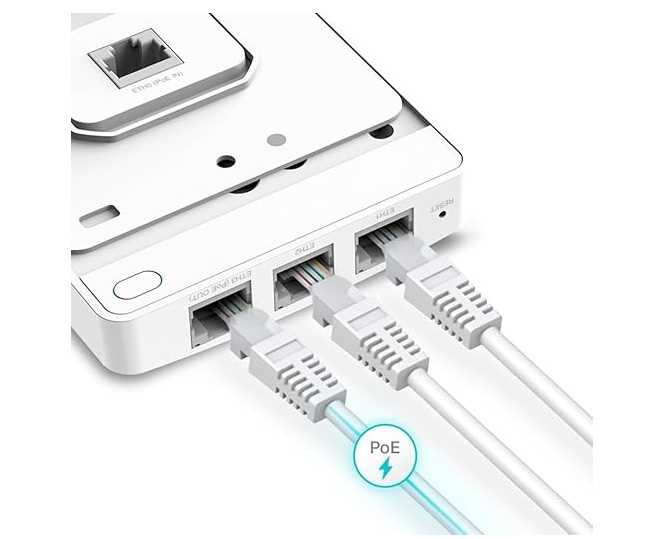 Home Networking Wireless Indoor Access Points TP-Link Omada EAP615-Wall | AX1800 WiFi 6 Wall Plate Access Point | 4x Gigabit Ports | PoE Passthrough | Cloud SDN & App Managed
