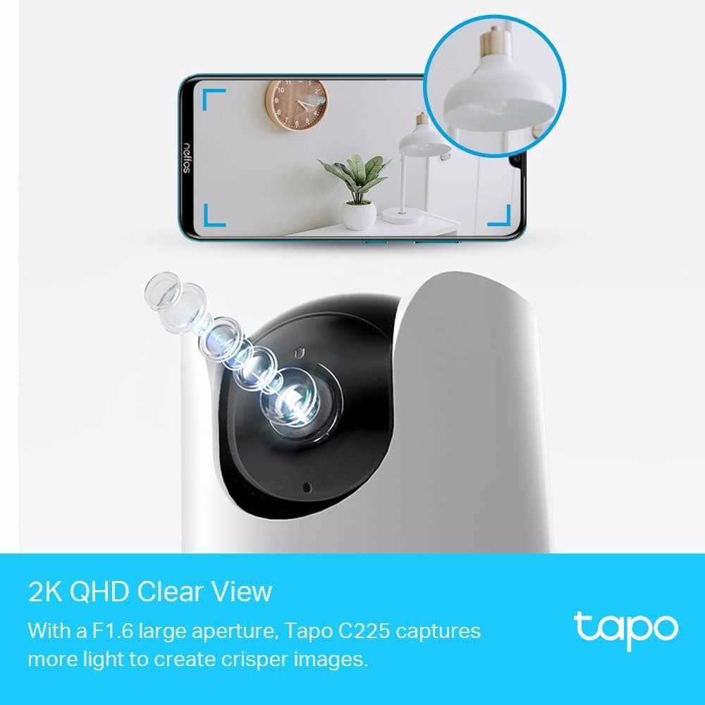 Home Networking Cameras & Surveillance TP-Link Tapo C225 4MP 2K QHD 1440p Pan/Tilt WiFi Security Smart AI Camera (White & Black)
