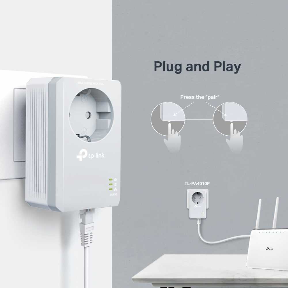 Home Networking Wireless Accessories TP-Link TL-PA4010PKIT AV600 Passthrough Powerline Starter Kit (White)