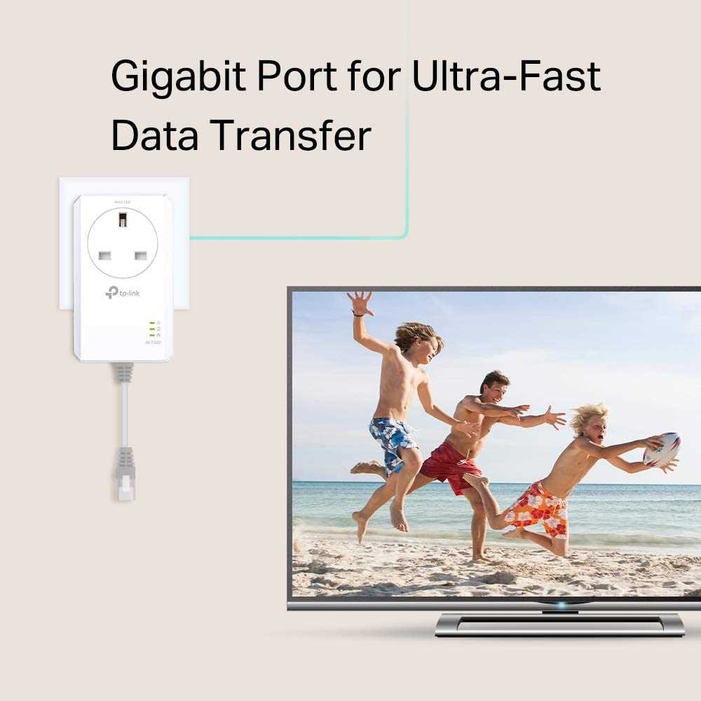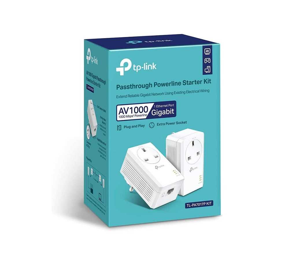 Home Networking Network Adapter TP-Link TL-PA7017P KIT Gigabit Passthrough Powerline Adapter Ideal for HD/3D/4K Video Streaming & Online Gaming (White)