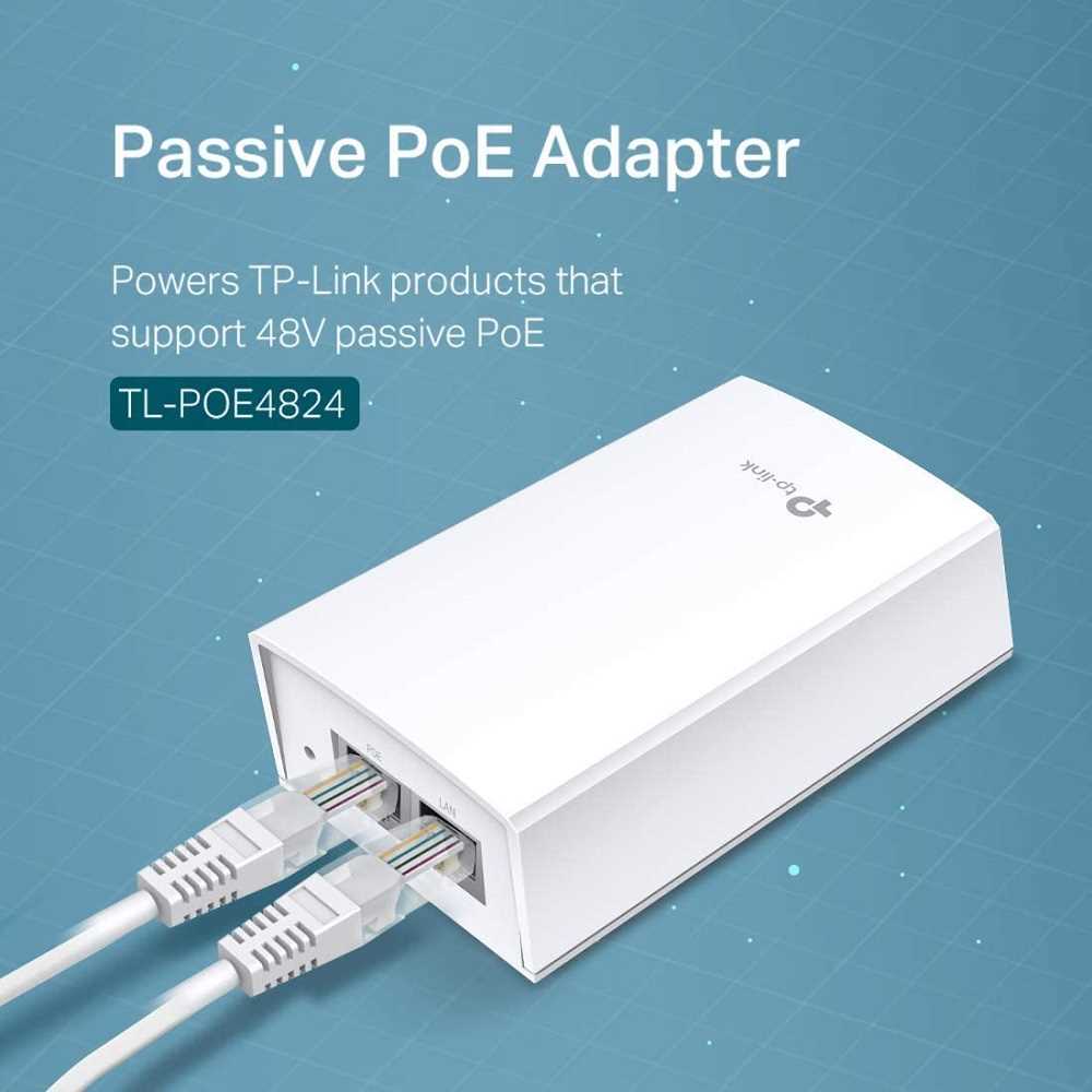 Home Networking Media Converters, Extenders TP-Link TL-POE4824G PoE Adapter | 48V DC Passive PoE | Gigabit Ports | Up to 100 Meters (325 feet) | Wall Mountable Design | White