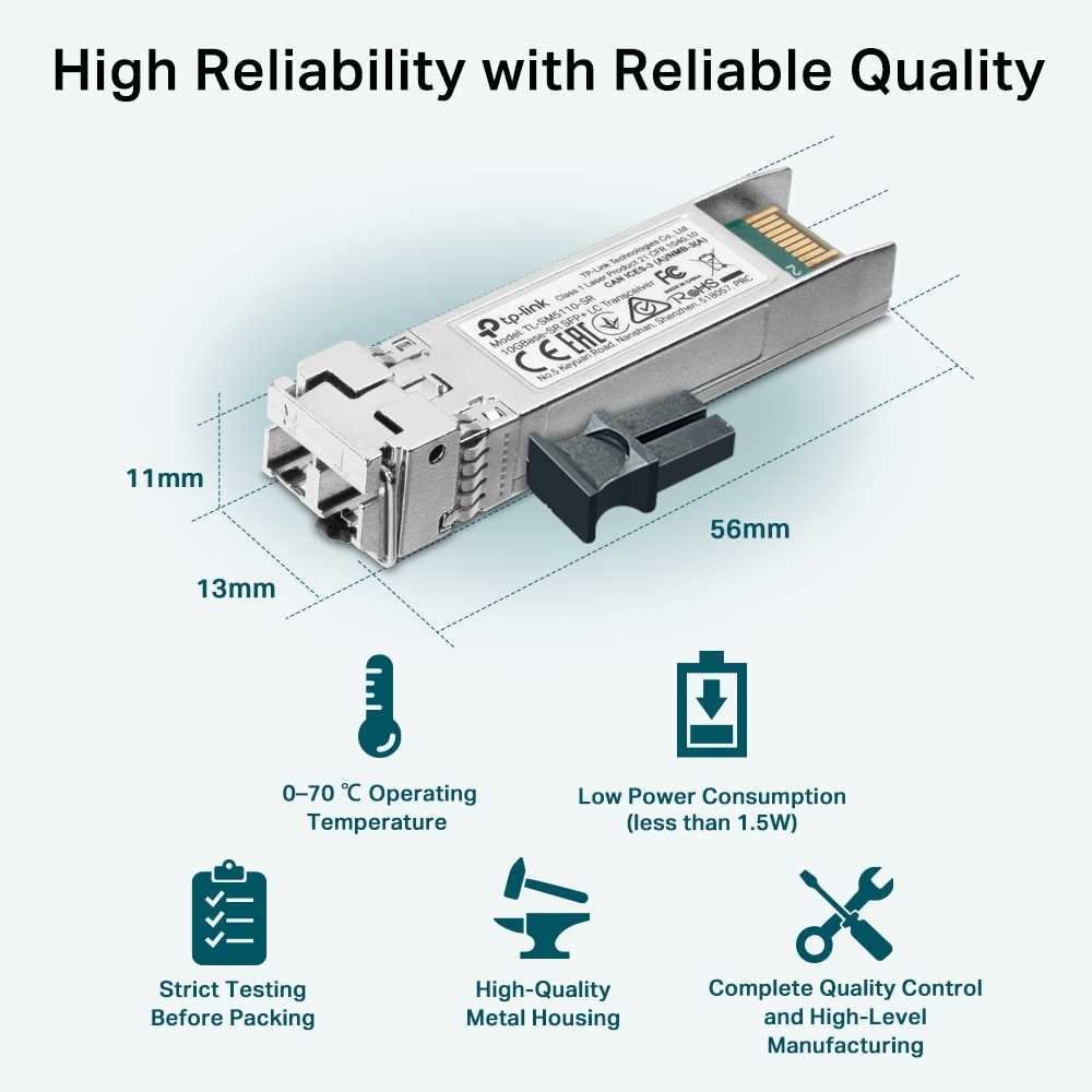 Home Optics and Transceivers 10/25/40G Modules TP-Link TL-SM5110-SR 10GBASE-SR SFP+ LC Transceiver (Silver)