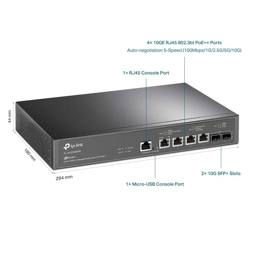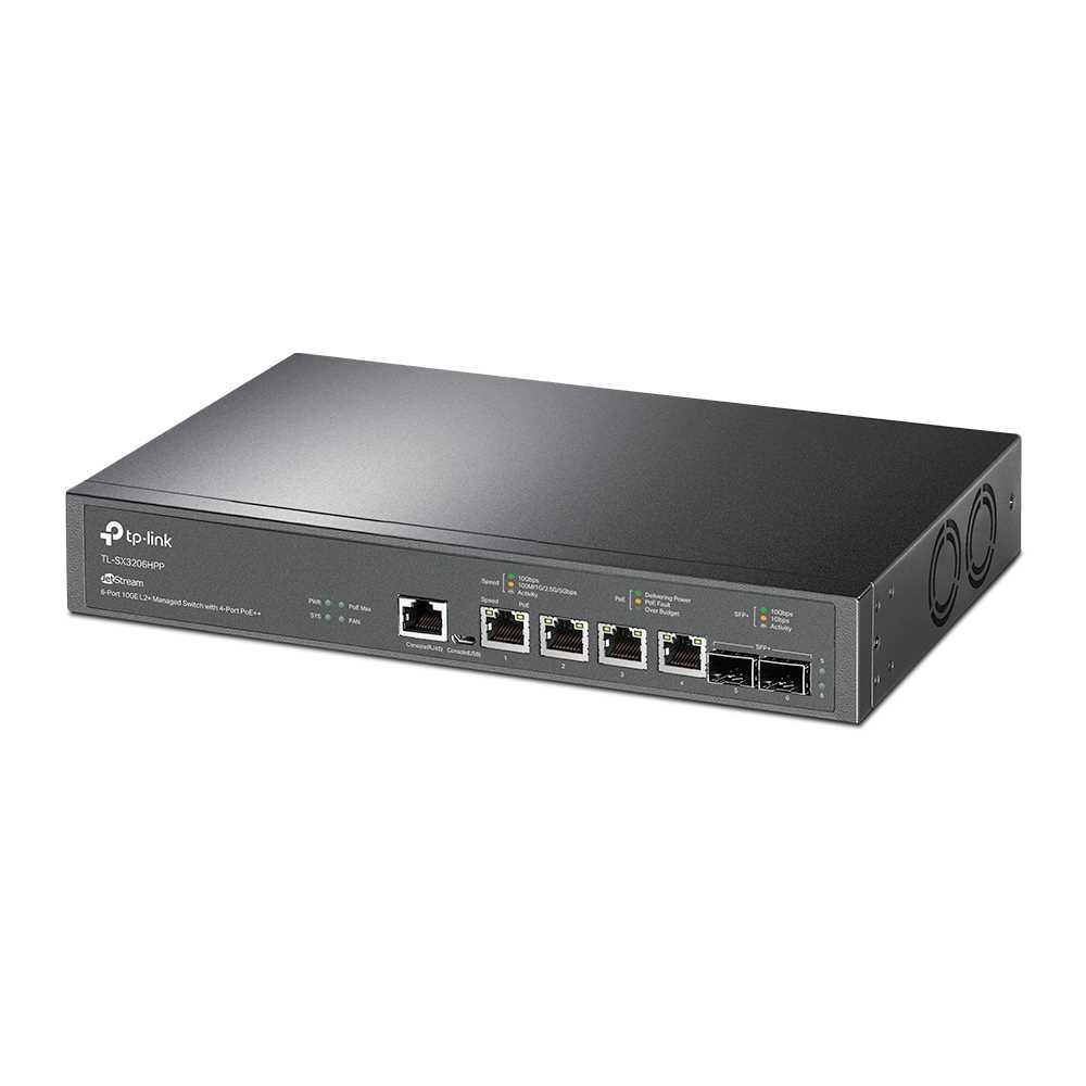 Home Networking Network Switches Network Switch Accessories TP-Link TL-SX3206HPP JetStream 6-Port 10GE L2+ Managed Switch With 4-Port PoE++ (Black)