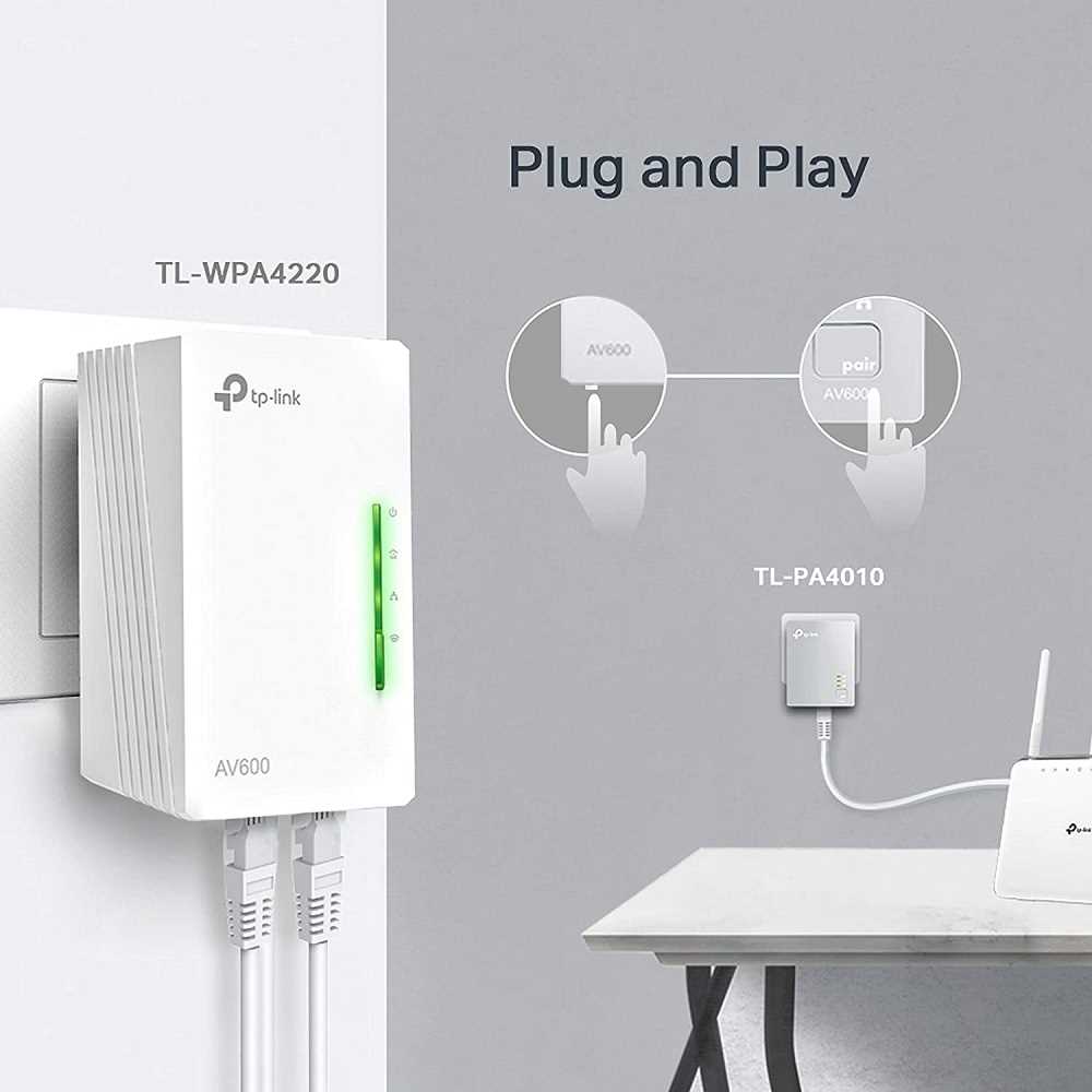 Home Networking Wireless Adapter TP-Link TL-WPA4220 KIT AV600 300Mbps Powerline Wi-Fi Extender Starter Kit with WiFi, WiFi Booster, Plug & Play, Power Saving, Expand Both Wired & WiFi...