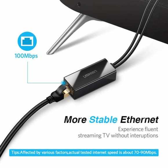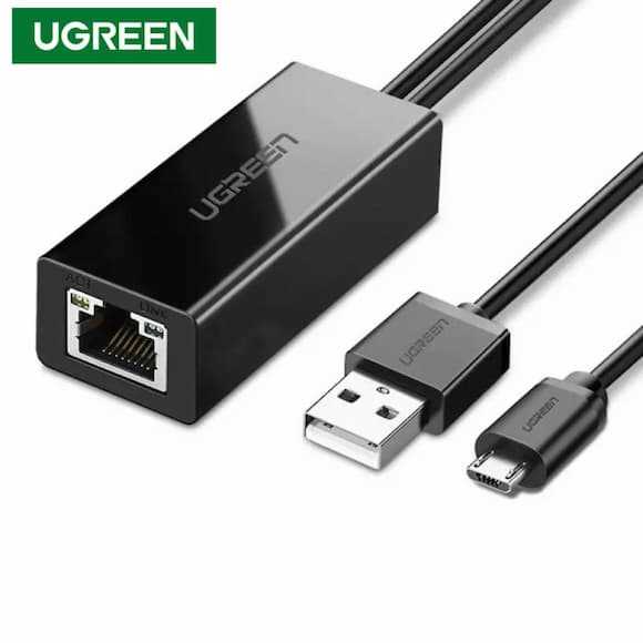Home Networking Power UGREEN 1 Meter Ethernet Adapter for Amazon Fire stick 2 and Micro USB TV Sticks, Micro USB to RJ45 Ethernet Adapter with USB Power Supply