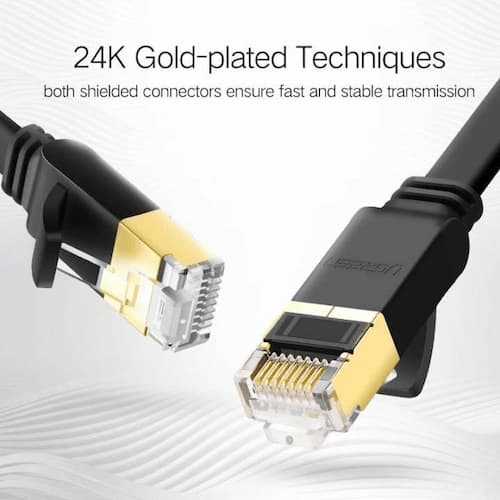 Home Fiber Optic Cables Fiber Patch Cables UGREEN 11276 Cat7 1M Flat Ethernet Cable | 10Gbps High-Speed LAN RJ45 Network Cable SSTP Shielded Patch Cord For PC