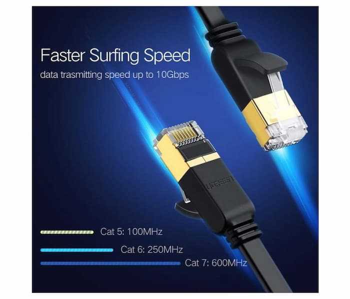 Home Networking Power Ugreen 11262 3 Meter Flat Cat7 Ethernet Cable RJ 45 Network Cable UTP Lan Cable Cat 7 RJ45 Patch Cord for Router Laptop Cable Ethernet Black-Flat Vers...