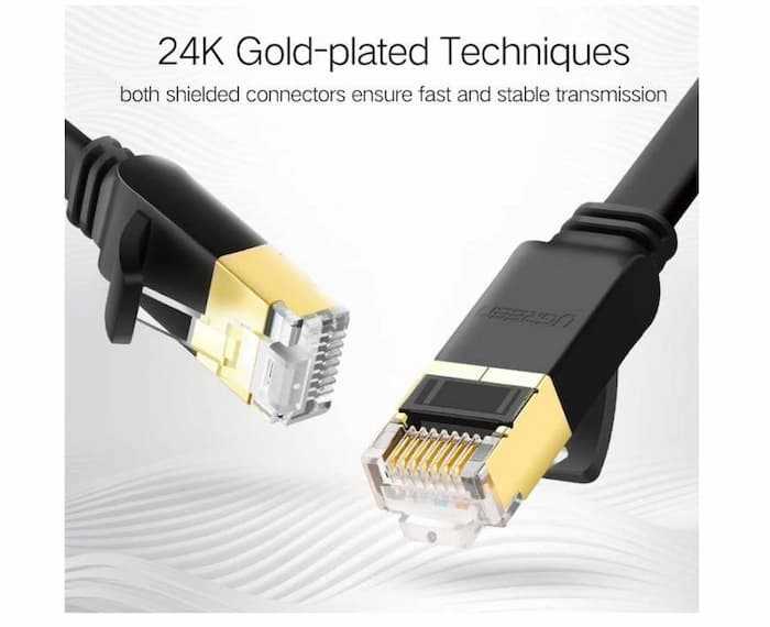 Home Fiber Optic Cables Accessories Ugreen 11263 5 Meter Flat Cat7 Ethernet Cable RJ 45 Network Cable UTP Lan Cable Cat 7 RJ45 Patch Cord for Router Laptop Cable Ethernet,Black-Flat Vers...