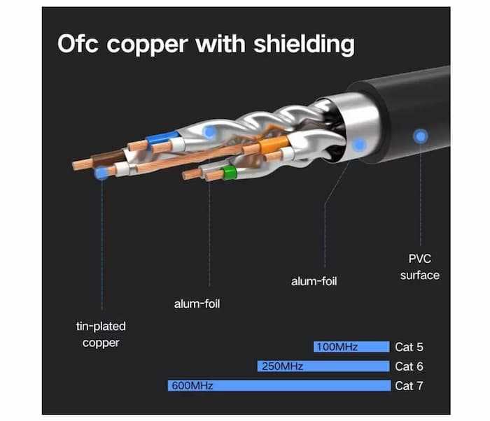 Home Fiber Optic Cables Accessories Ugreen 11268 1 Meter Round Cat7 Ethernet Cable RJ 45 Network Cable FTP Lan Cable Cat 7 RJ45 Patch Cord for Router Laptop Cable Ethernet, Black-Round V...