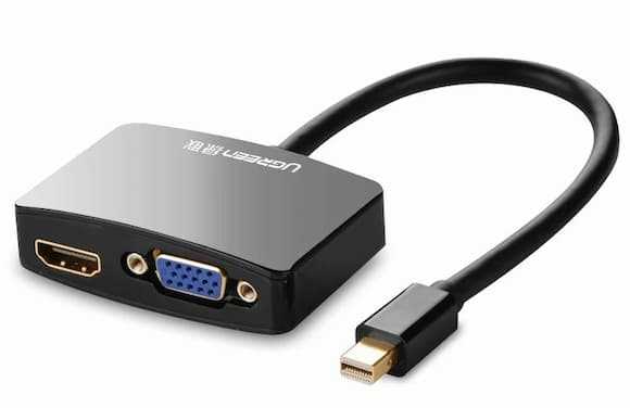 Home Networking Power Ugreen 2 in 1 Thunderbolt 1/2 Mini DP to HDMI VGA Cable Adapter Mini DisplayPort To HDMI VGA Converter for Apple MacBook Air Pro (Black)-Intl