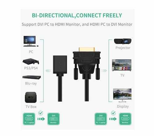 Home Networking Power Ugreen 20118 Bidirectional DVI-D to HDMI Adapter Cable