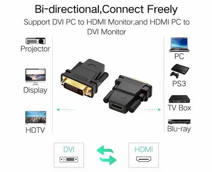 Home Networking Network Adapter Ugreen 20124 HDMI to DVI 24+1 Adapter Female to Male 1080P HDTV Converter DVI Connector for PC PS3 Projector TV Box