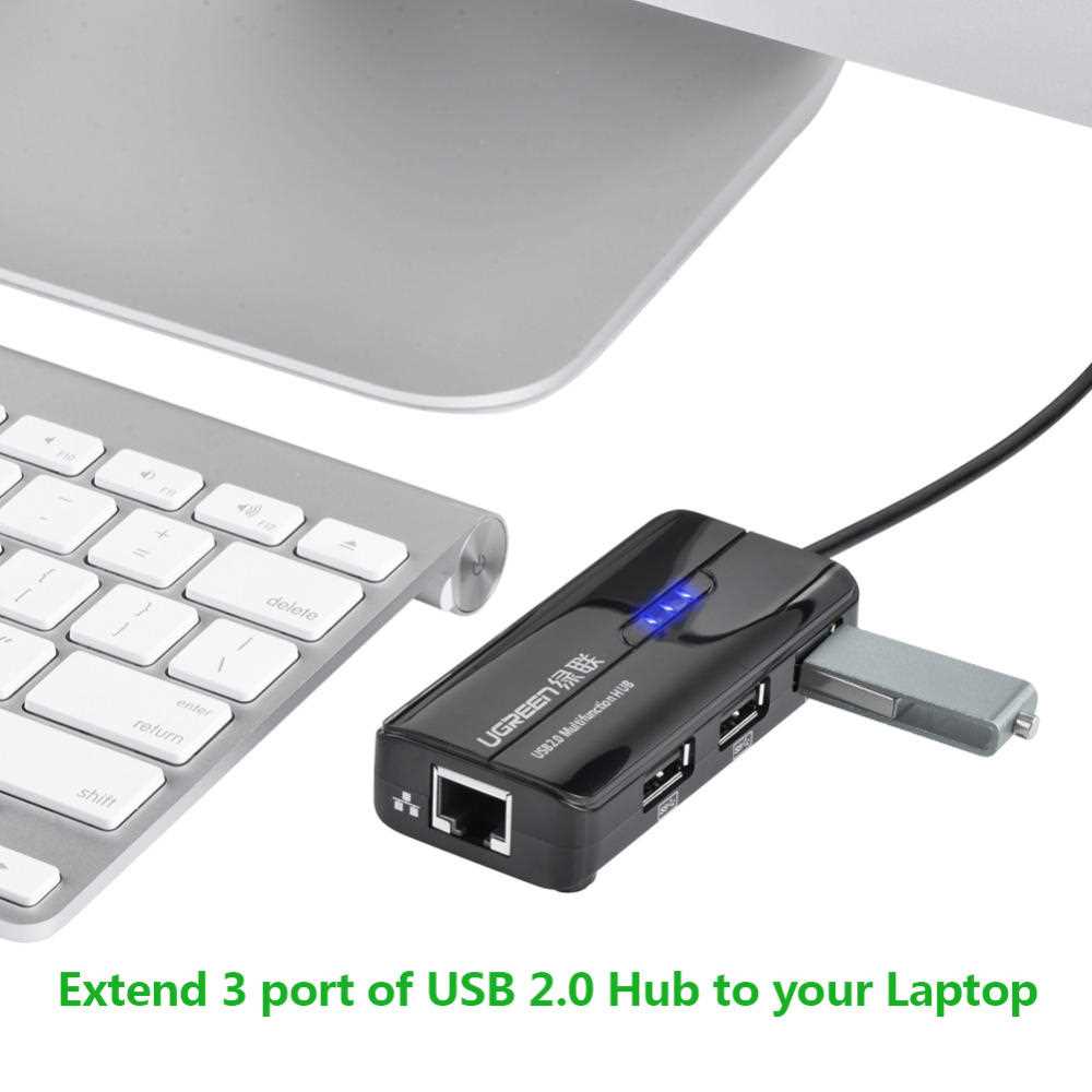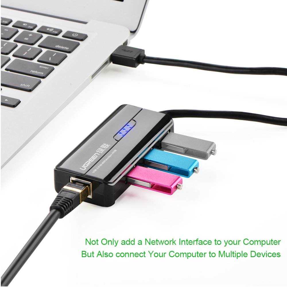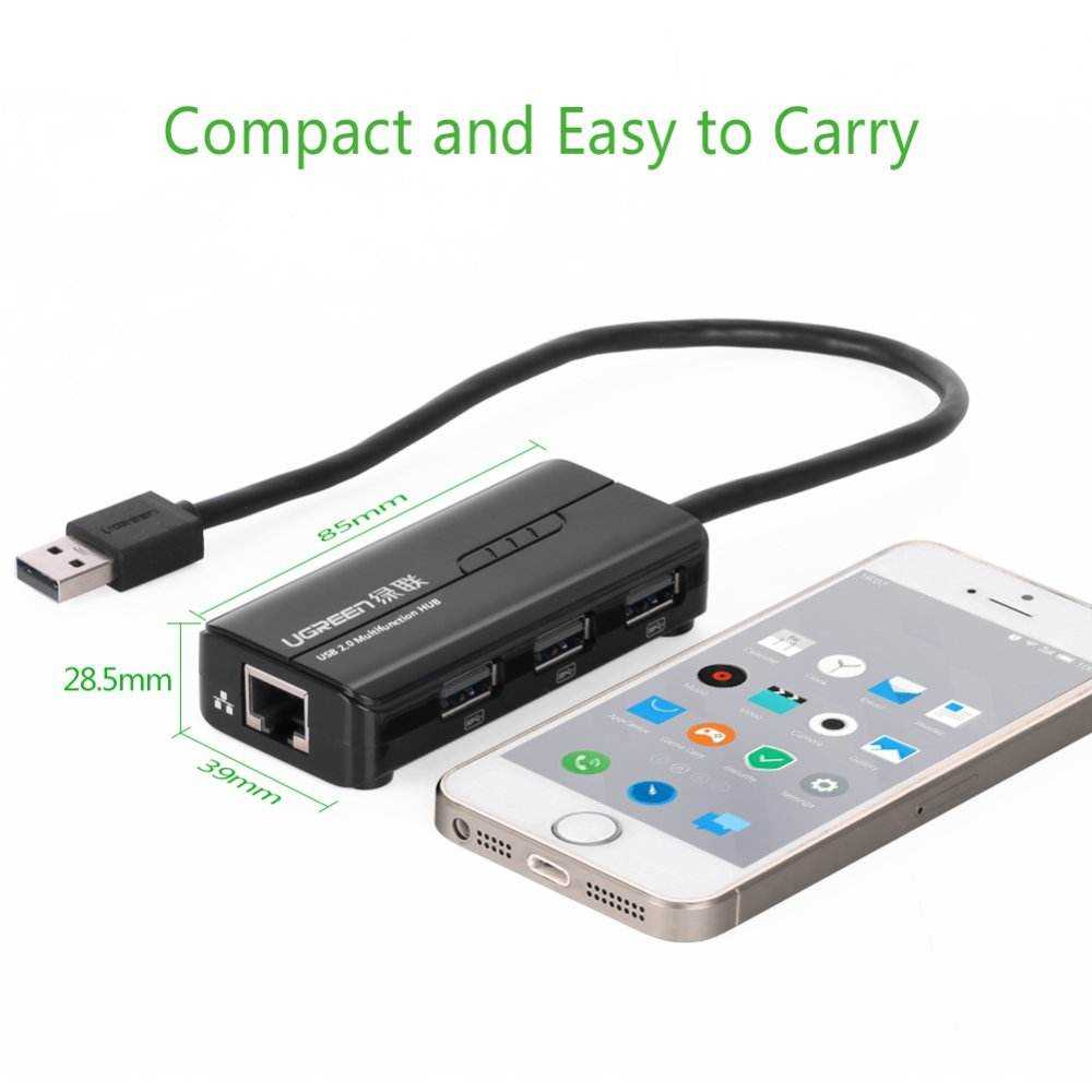 Home Networking Power UGREEN 3 Ports USB 2.0 Hub | 10/100Mbps Fast Ethernet LAN Wired Network | Windows Mac OS