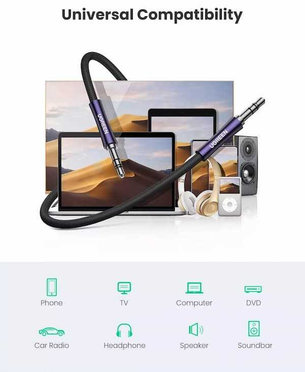 Home Networking Power UGREEN 3.5mm Male To Male Round Cable Gold Plated 3m | AV119-10736