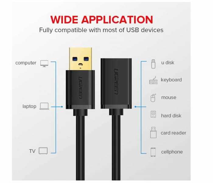 Home Fiber Optic Cables Fiber Pigtails Ugreen 30127 3 Meter USB Extension Cable USB 3.0 Extender Cord Type A Male to Female Data Transfer Lead for Playstation, Xbox, Oculus VR, USB Flash Dr...