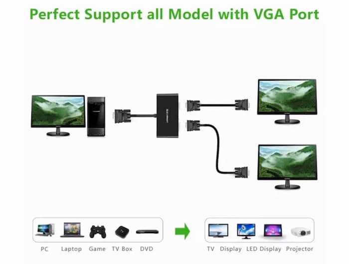 Home Fiber Optic Cables Accessories Ugreen 40254 VGA Monitor Y Splitter Cable Adapter HD15 M/2xF 3ft/ 1m, Smart Solution for Home/Business Theater and A/V Applications