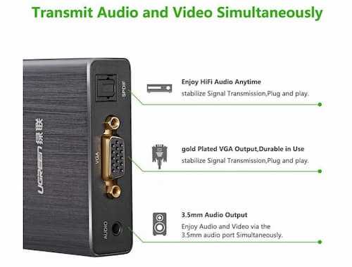 Home Networking Power Ugreen 40282 HDMI to VGA Cable With Micro USB 1080P