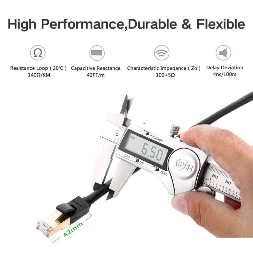 Home Networking Power UGREEN 8Meter Round Cat7 Ethernet Cable RJ45 Network Cable Cat 7 RJ45 Patch Cord for Router Laptop Cable Ethernet,Black-Round Version