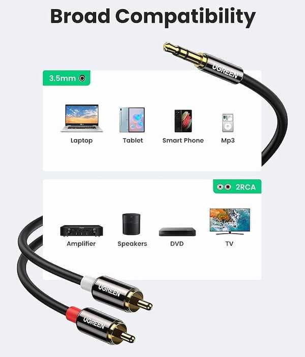 Home WDM, OTN & PON Passive Components PLC Splitters Hot Ugreen AV116-10583 3.5mm to 2RCA Male Audio Cable RCA Auxiliary Hi-Fi Sound Shielded Stereo Flexible RCA Y Splitter Cable Cord- 1.5 Meter