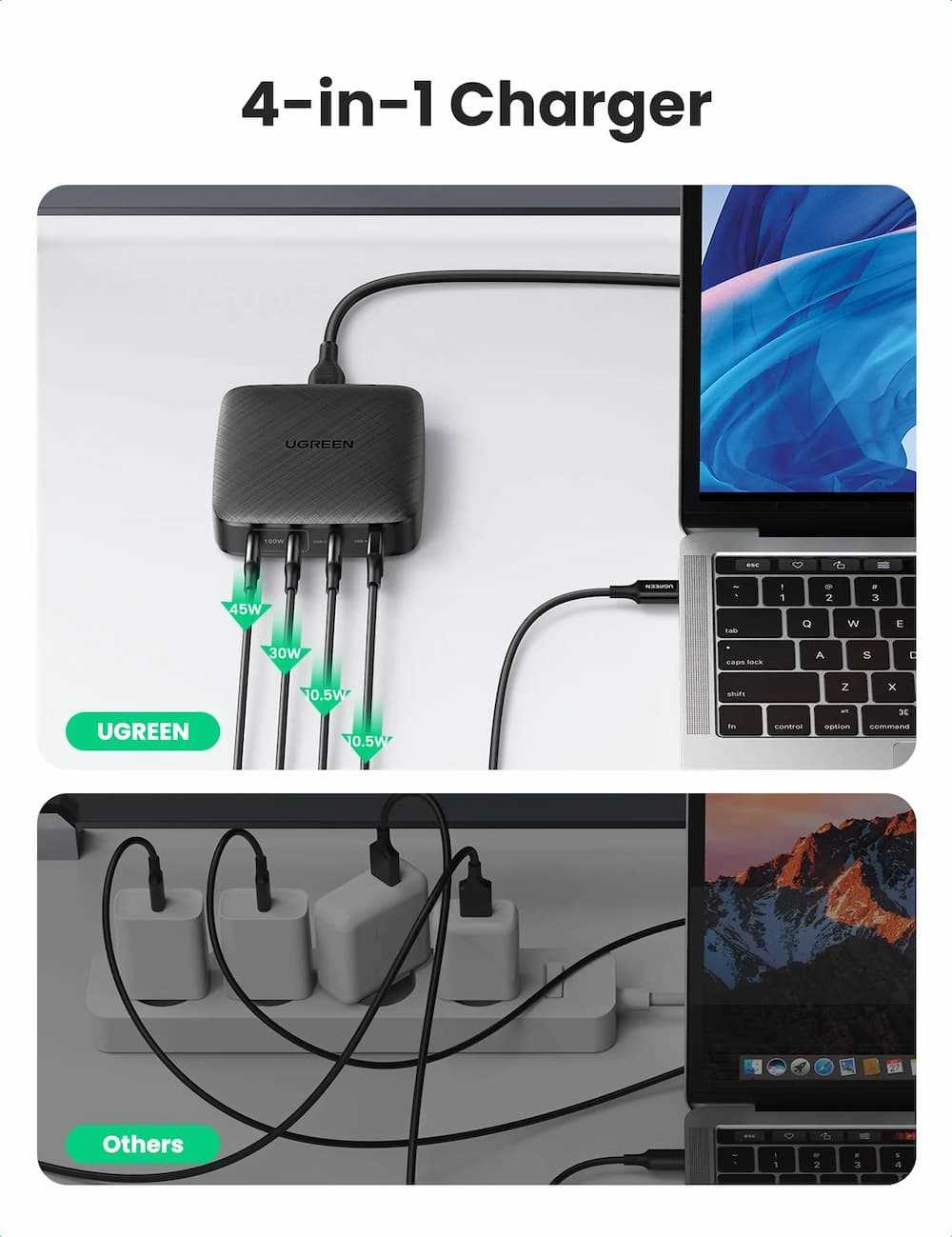 Home Networking Power UGreen CD226-70871 100W USB C Desktop Charger With 4 Ports - Black