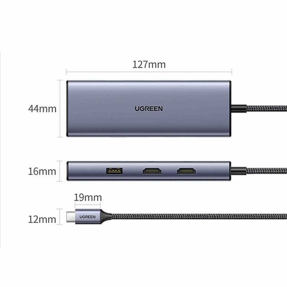 Home Networking Power UGreen CM490-90119 4K 60Hz 60w PD USB type C to 2 x USB 3.0 + 1 x USB 2.0 + 2 x HDMI + Gigabits LAN RJ45 1000M + SD + TF - Silver