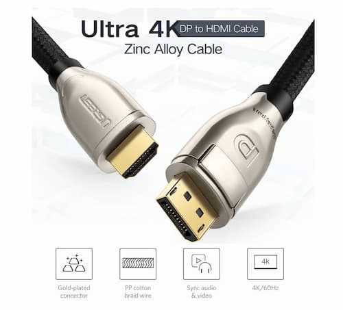 Home Networking Power Ugreen DP111-40434 2M DisplayPort to HDMI Cable 4K 60Hz Active Adapter